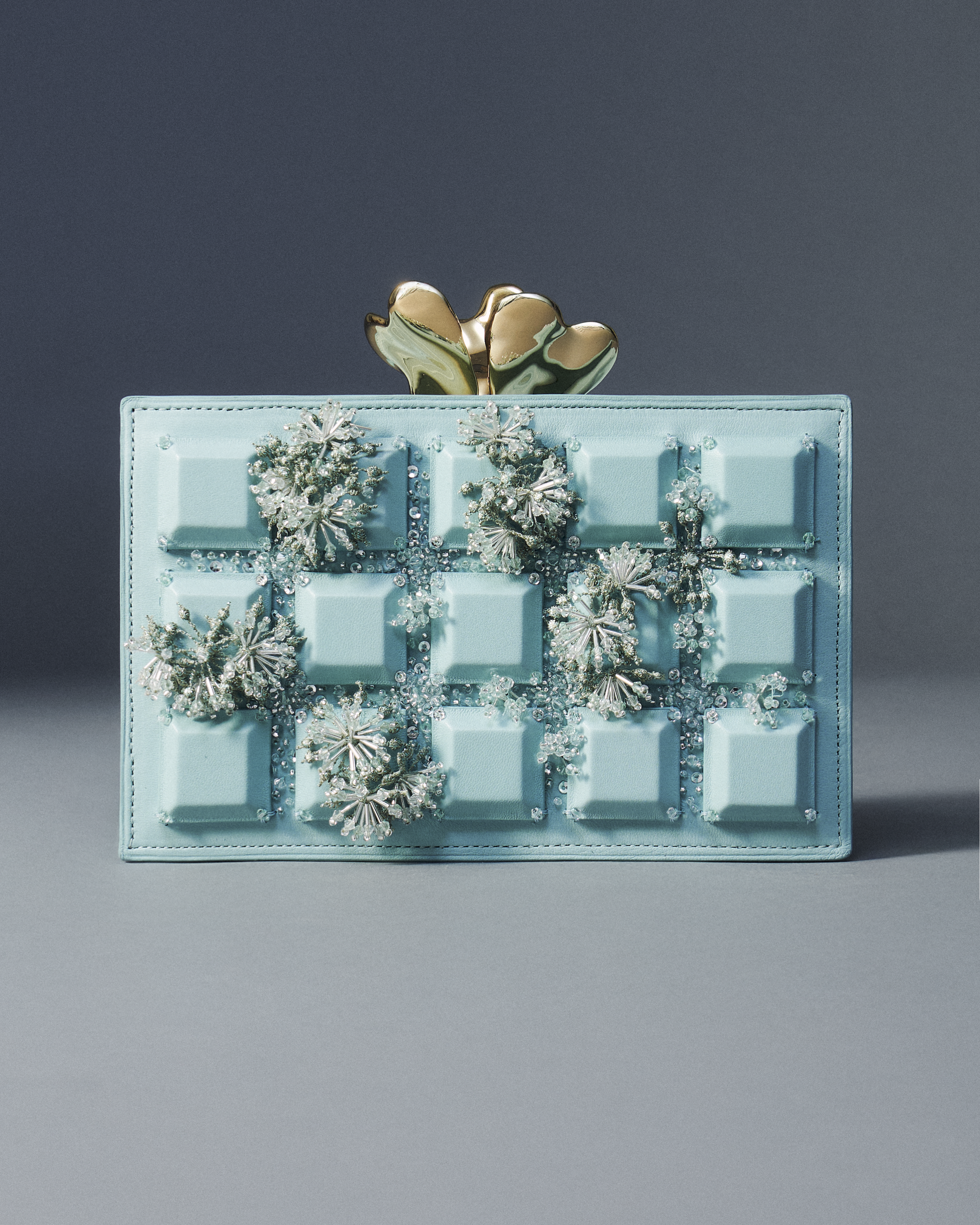 Black silk organza shirt with large embroidered plastron with micro pleats, sequins and dark green iridescend feathers.