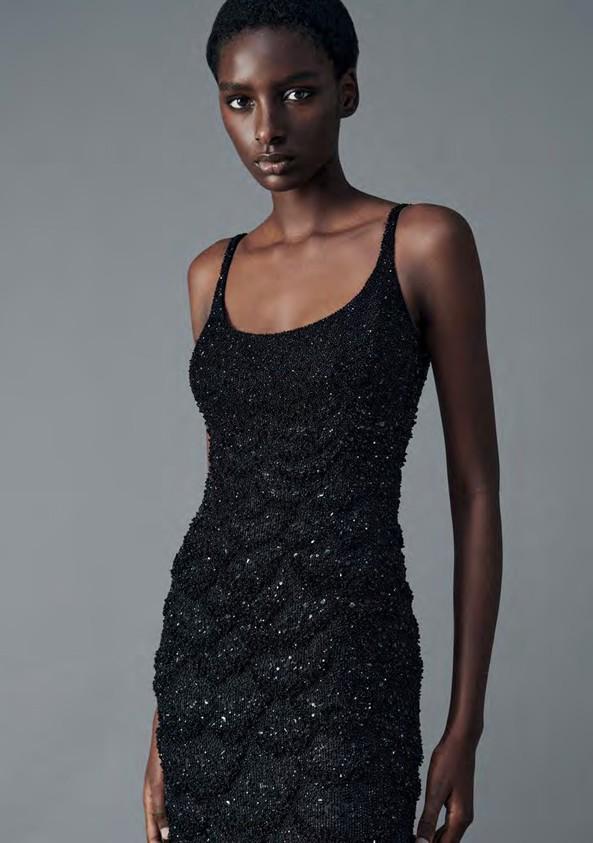 Long dress in black silk organza fully embroidered in a gradient in sequins, beads and crystals.