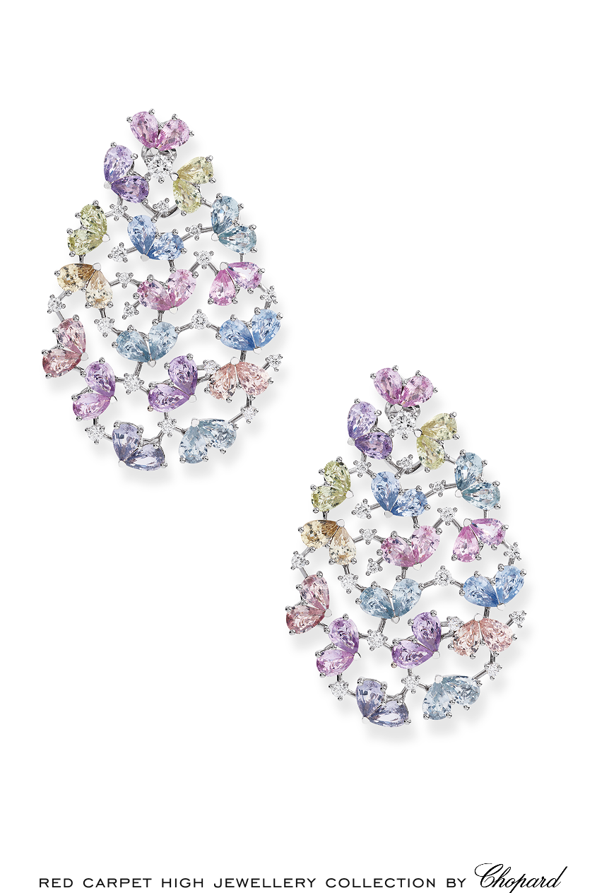 Siren skirt fully embroidered with Silk organza hearts entirely embrodiered with sequins, crystals and beads on a light tulle base with short silk georgette lining.